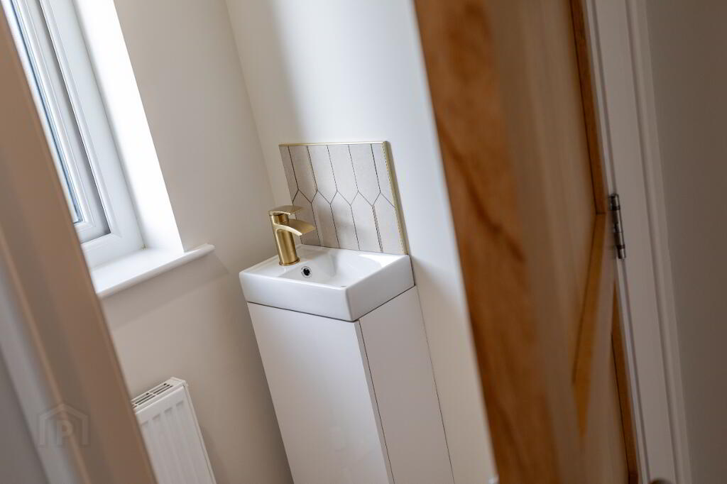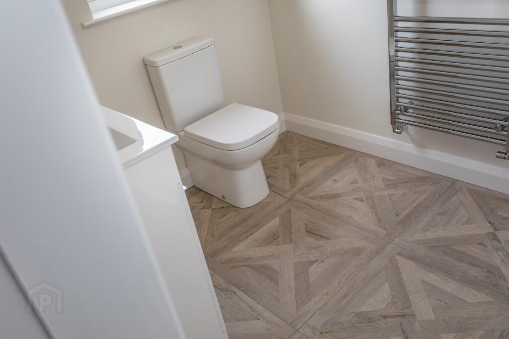 Floor coverings and tiling: Clients choice of Floor tiling to kitchen, downstairs hallway, bathroom, ensuite, and WC Carpet or Wooden plank flooring to lounge, bedrooms, stairs and upstairs landing Splash back tiling around bath Floor to ceiling splashback behind sink