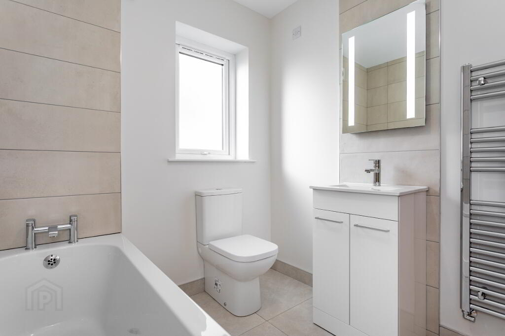Bathroom, Ensuite and WC: Contemporary white sanitary ware with chrome fittings Chrome towel rail as standard in main bathroom and ensuite Tiled splashback to sink and around bath Bath fitted to main bathroom Shower pod to ensuite Half tiled wall in main bathroom as standard