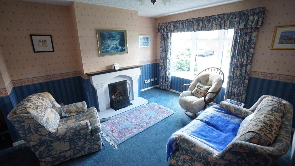 Lounge 3.72m x 3.66m (12' 2" x 12' 0") Open fireplace with tiled heart and surround, solid wooden mantle, cast iron inset, dimmer lights, 1 x double panel radiator, open plan to....