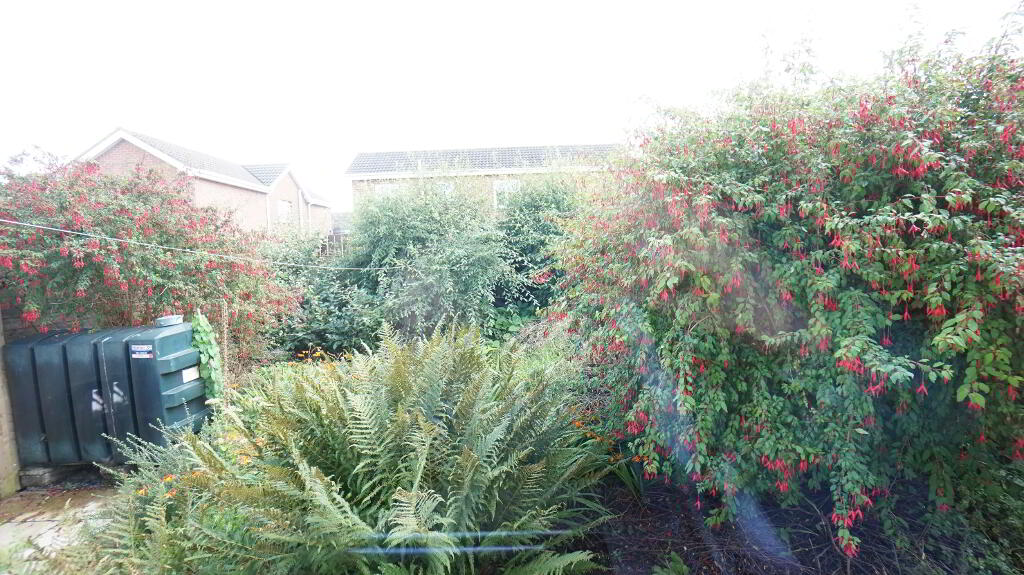 Front garden in lawn with various plants and trees, tarmac driveway. Rear enclosed garden in lawn with various plants, shrubs and trees, outdoor watertap
