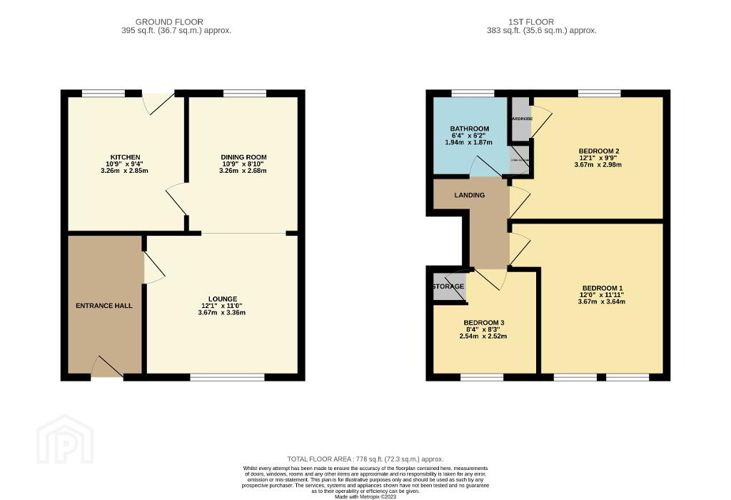 Landing 2.56m x 1.98m (8' 5" x 6' 6") Access to attic.