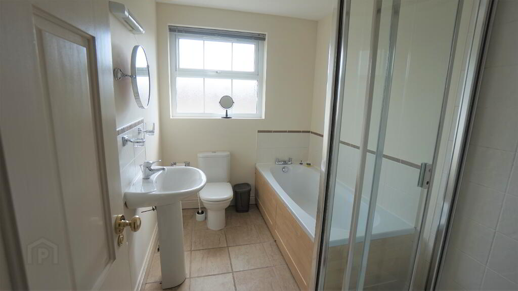 Main Bedroom 4.02m x 3.36m (13' 2" x 11' 0") Wood effect floor, single panel radiator. En-Suite 2.62m x 0.9m (8' 7" x 2' 11") White suite comprising; low flush w.c., pedestal wash hand basin with chrome mixer tap, walk in thermostatic valve shower, tiled floor, part tiled walls, extractor fan.