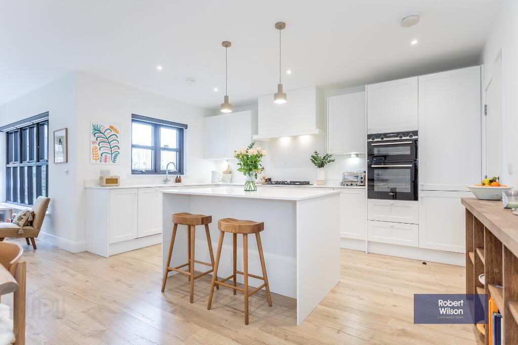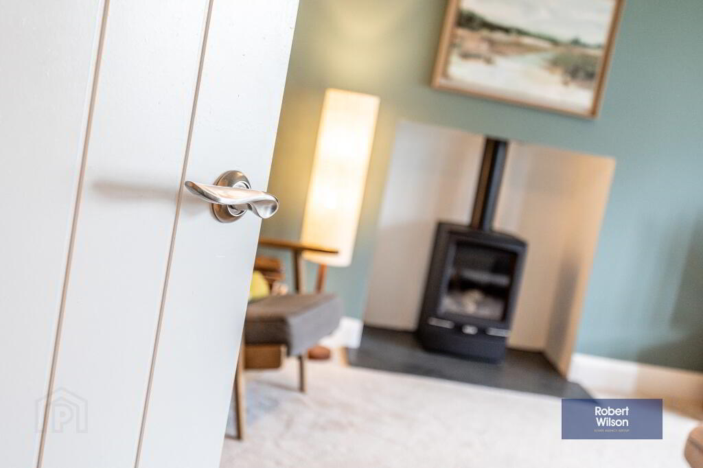 Inside, the home features bison floor slabs on the first floor, gas-fired central heating, and a cosy lounge with a bay window and gas stove. The kitchen is a culinary delight with shaker units and quartz worktops, making it a hub for culinary creativity and casual morning coffee.