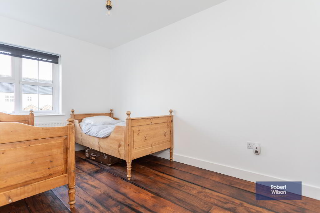 Bedrooms 2 and 3 continue the theme of reclaimed floors creating a cohesive and stylish atmosphere throughout the property. The storage cupboard over the stairs adds a practical touch to the design.