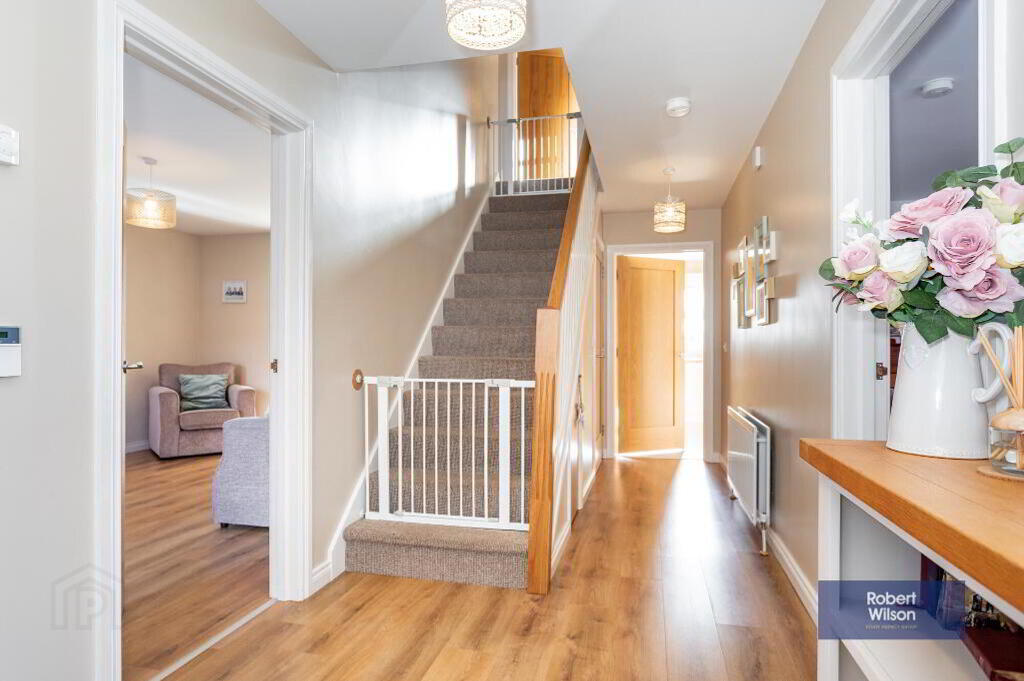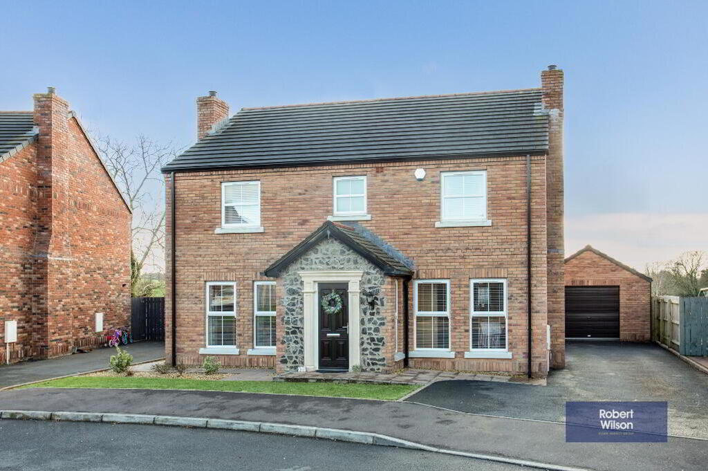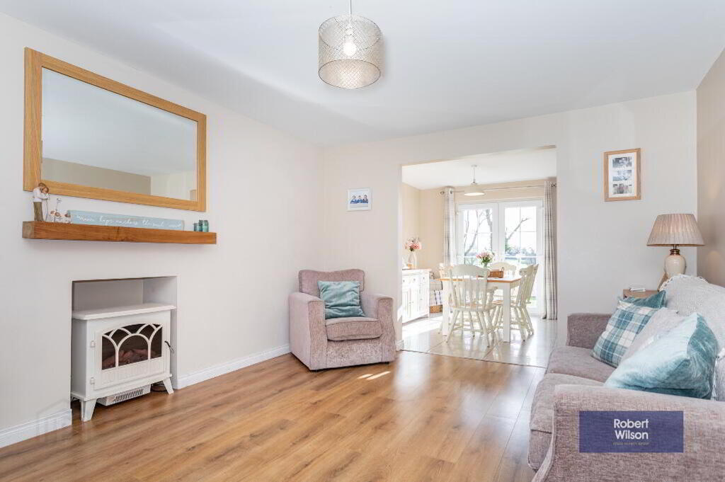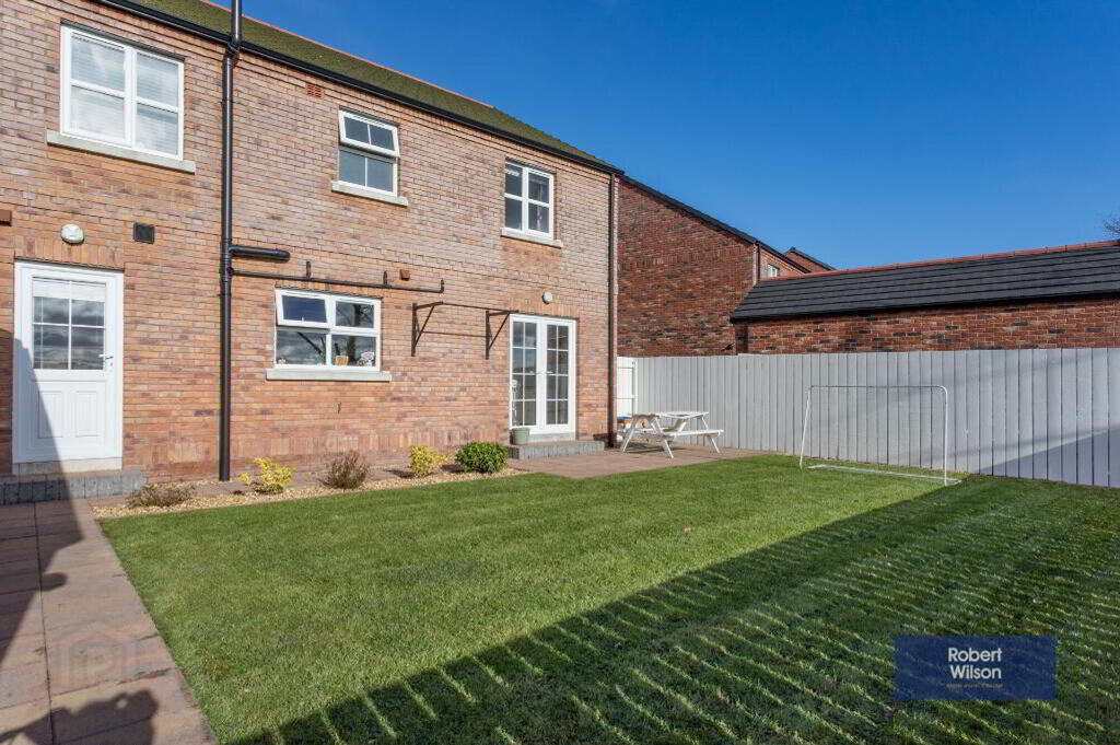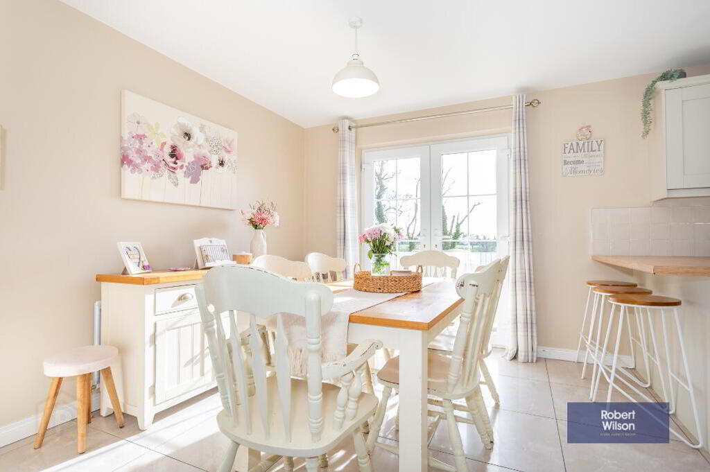 Nestled in the picturesque village of Magheralin, 25 New Forge offers a blend of modern comfort and countryside charm. Step inside to discover a spacious lounge with a feature fireplace, a cozy living room seamlessly connected to the kitchen and dining area, and a well-appointed kitchen complete with high and low-level units. On the first floor, you'll find the main bedroom with its en-suite bathroom, alongside three additional generously sized bedrooms.