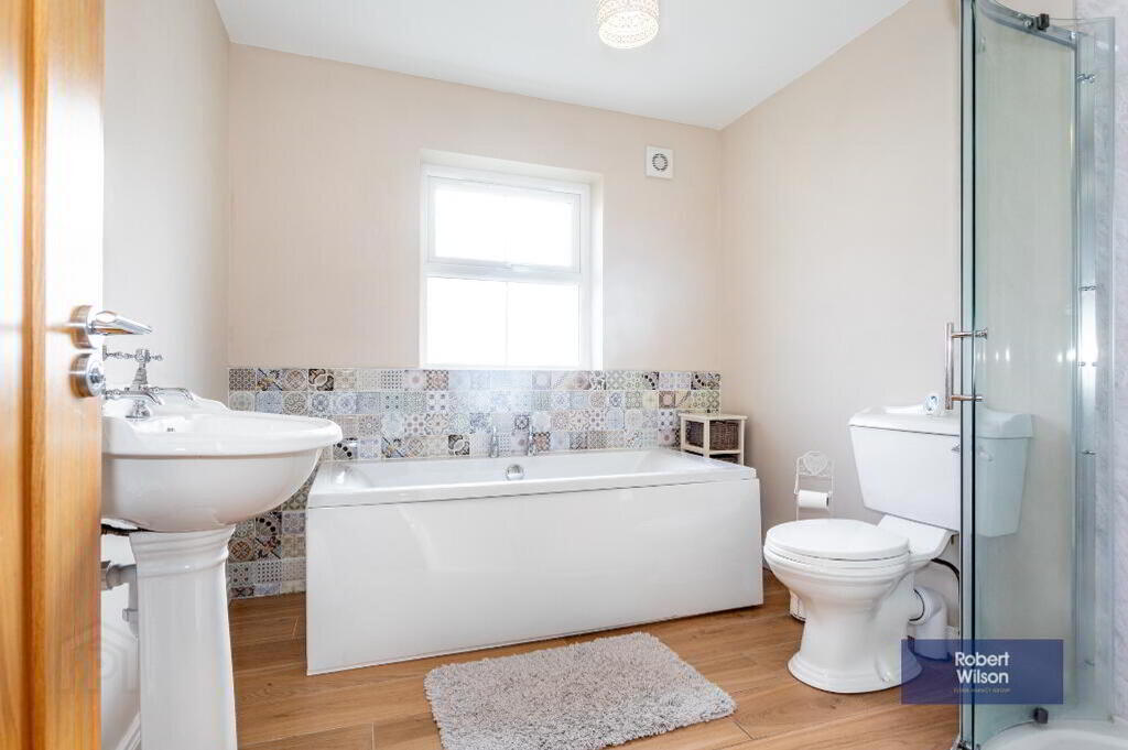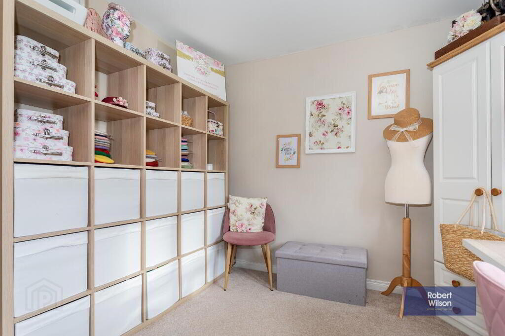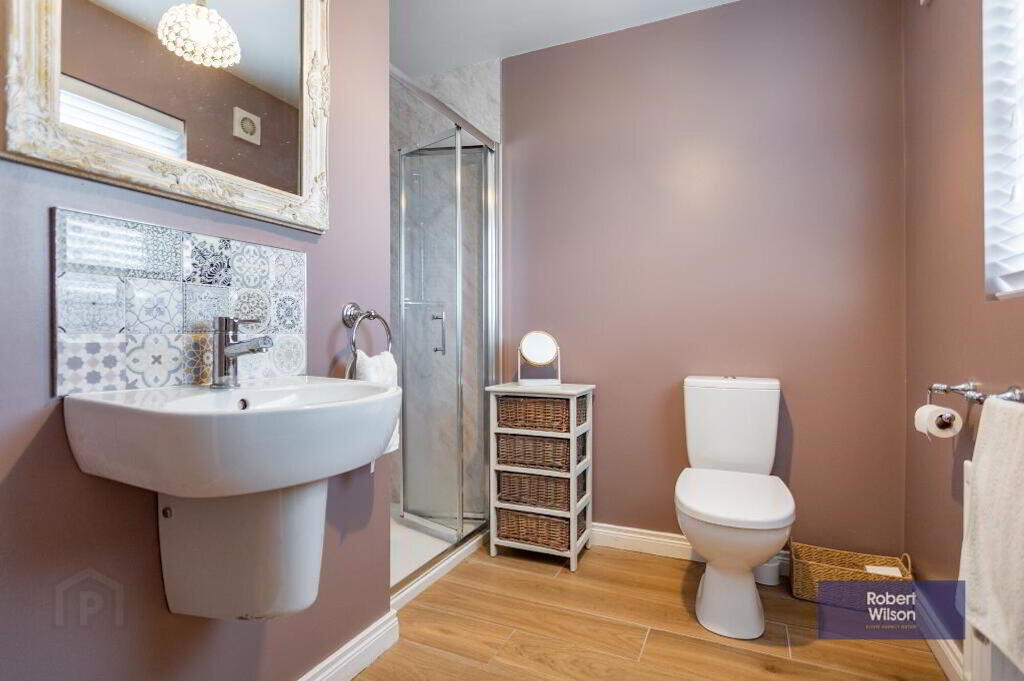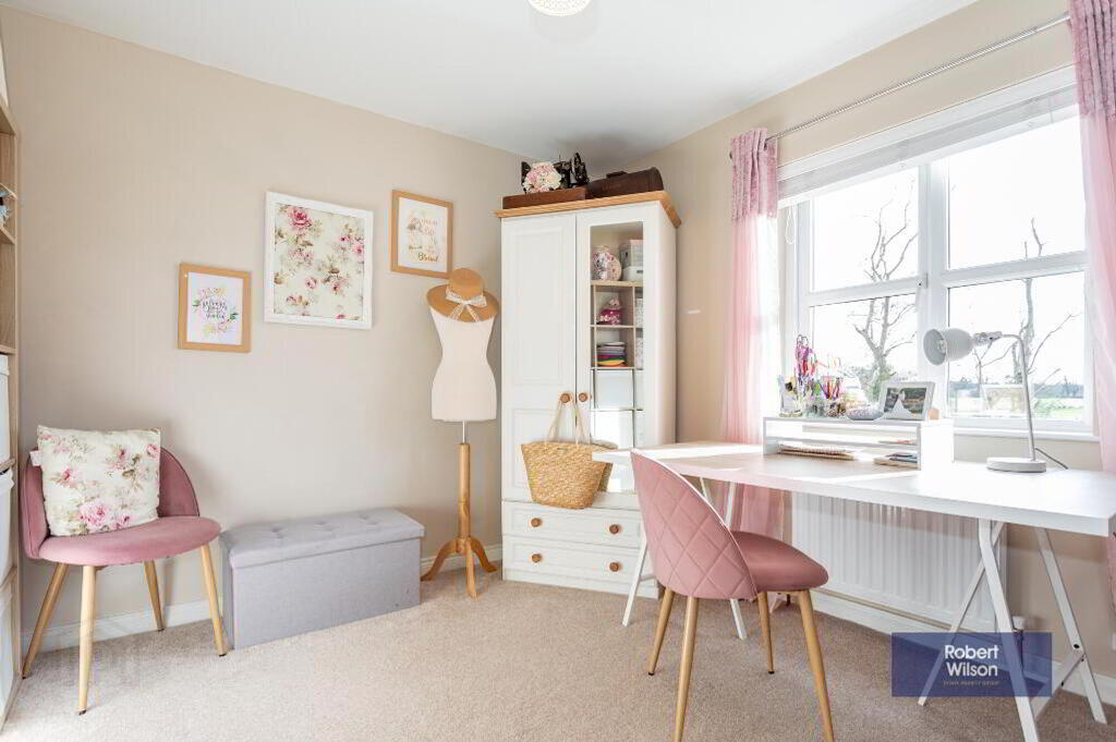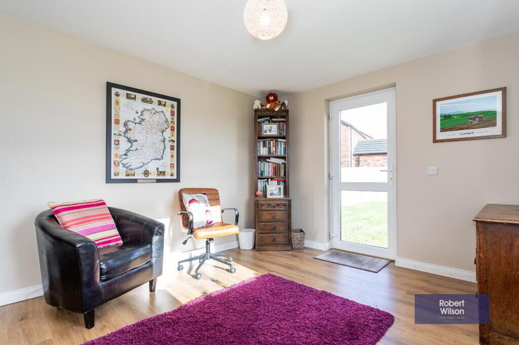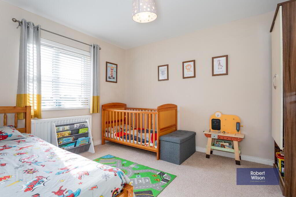 Nestled in the picturesque village of Magheralin, 25 New Forge offers a blend of modern comfort and countryside charm. Step inside to discover a spacious lounge with a feature fireplace, a cozy living room seamlessly connected to the kitchen and dining area, and a well-appointed kitchen complete with high and low-level units. On the first floor, you'll find the main bedroom with its en-suite bathroom, alongside three additional generously sized bedrooms.