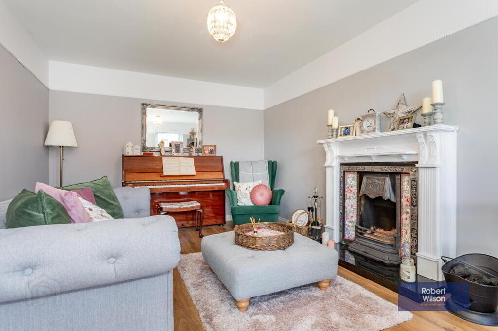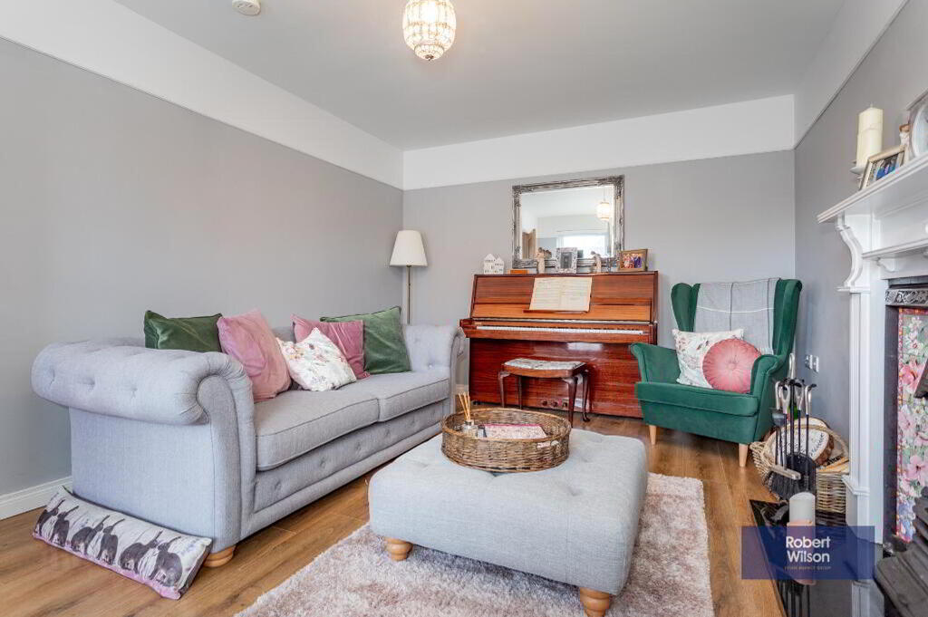 4.83m x 3.24m (15' 10" x 10' 8") Feature fireplace with open fire, granite hearth , tile inset and cream surround, wood effect laminate flooring, double panel radiator.