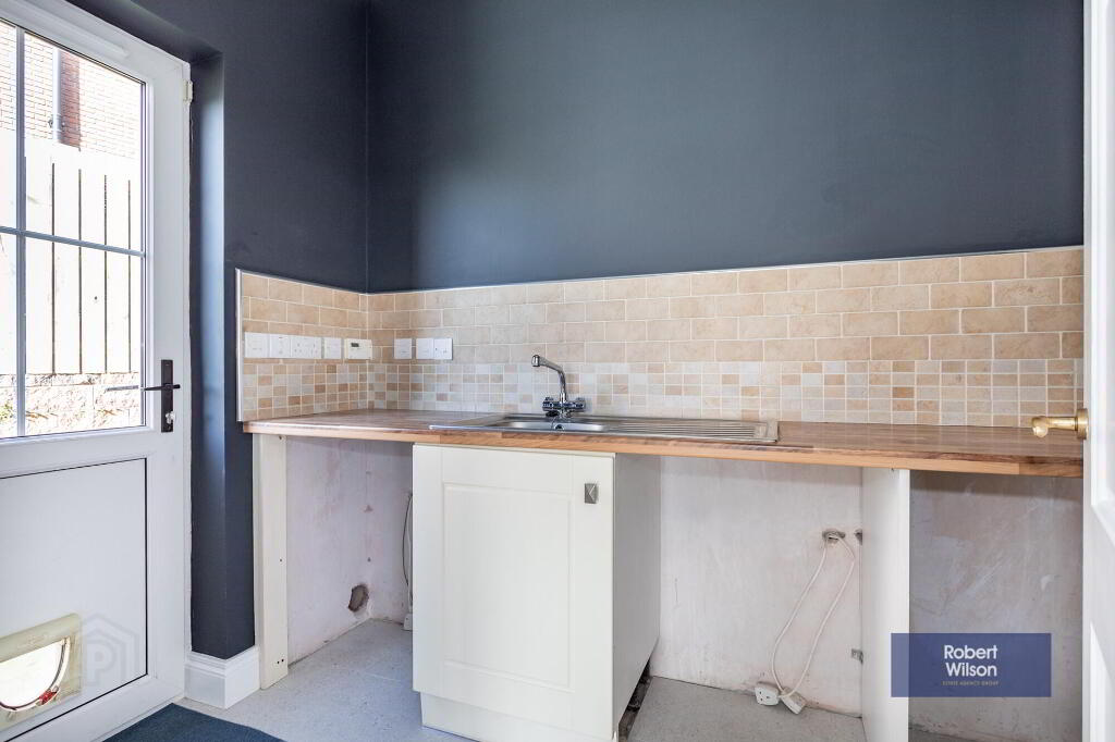 Excellent range of fitted units, stainless steel sink unit with mixer taps. Tiled splash back , space for washing machine and tumble dryer. Extractor fan , Pvc door to side garden.