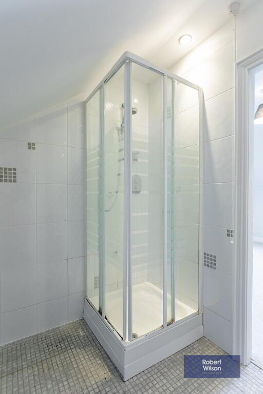 2m x 4m (6' 7" x 13' 1") White suite panel bath , Large walk in shower cubicle. Low flush w.c, Tiled floors, Extractor fan, Recessed lighting.