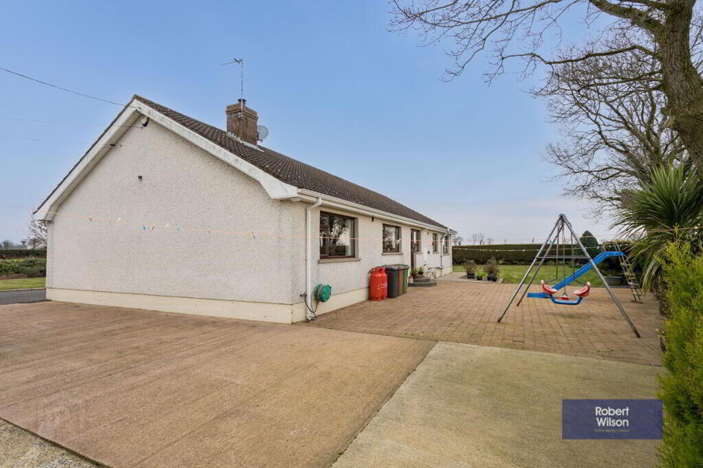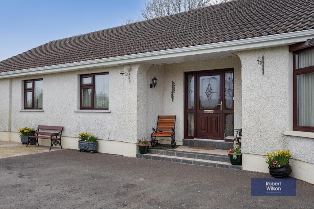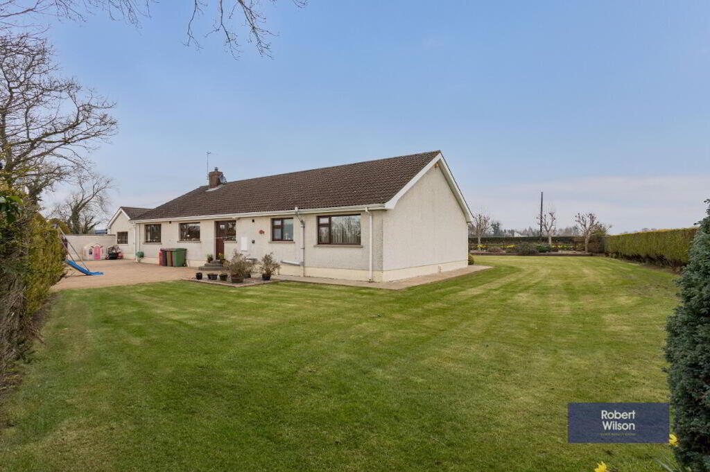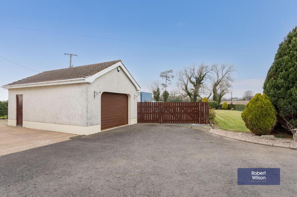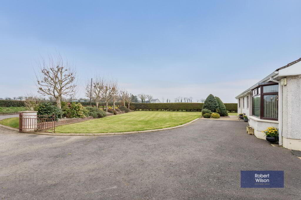 We are pleased to welcome to the market 104 Old Kilmore Road, a spacious, well maintained bungalow located on the much sought after Old Kilmore Road, Moira. Situated on a private site approx. 1.5 miles from Moira village. Entrance gates lead you to beautiful landscaped gardens in lawn with mature trees and shrubs. The property sits on 0.55 of an acre with panoramic views over the open countryside. In addition to the bungalow and detached garage there is an adjacent enclosed yard and paddock which boasts great business potential.