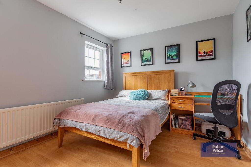 3.01m x 4.73m (9' 11" x 15' 6") Wood effect laminate flooring, walk in wardrobe, double panel radiator.