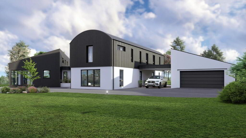 Plans have been drawn up for a superb detached 2 storey contemporary modern barn style home of approximately 3,750 sq ft with a detached garage and connecting car port.