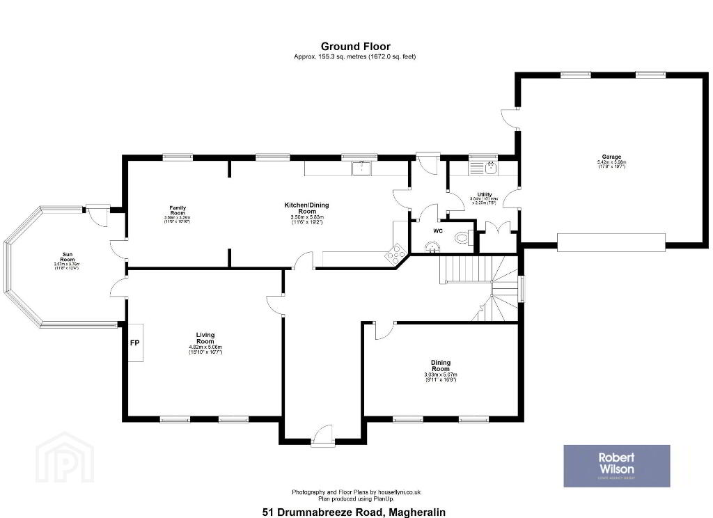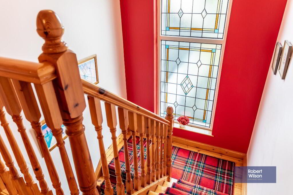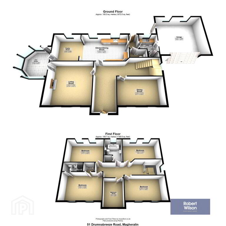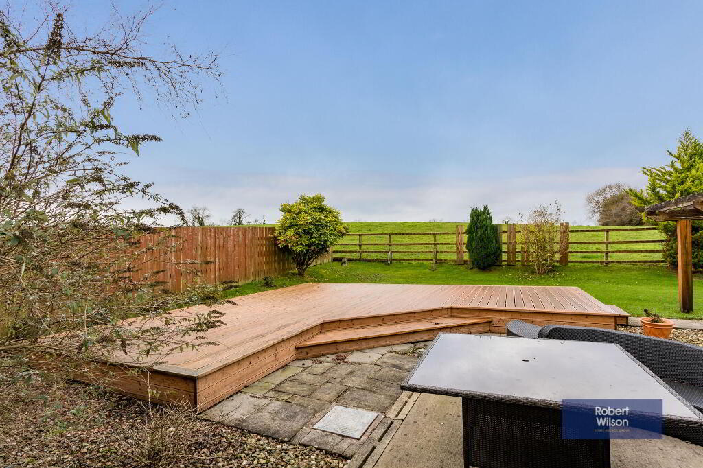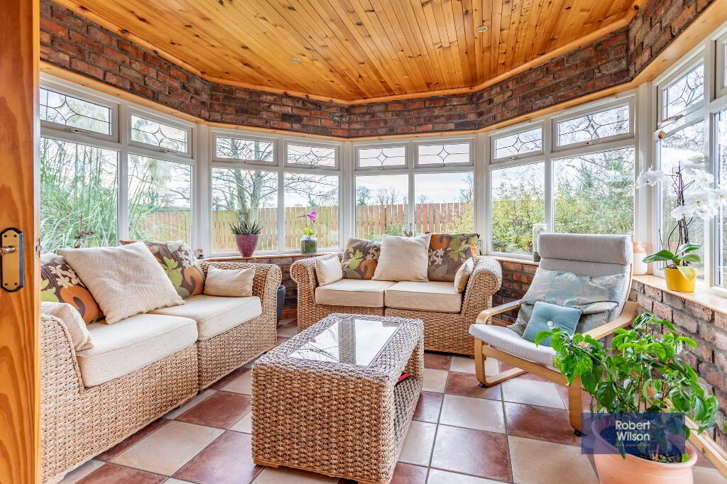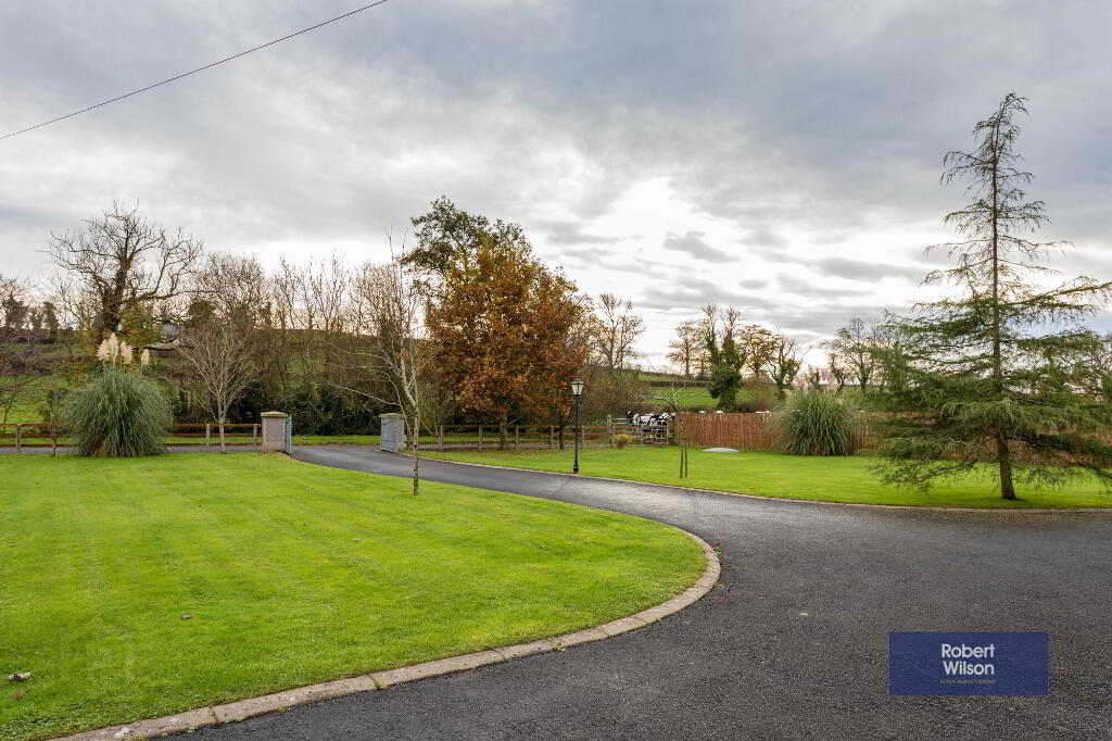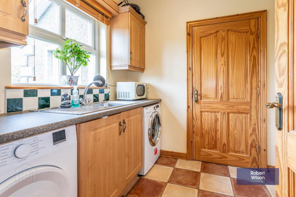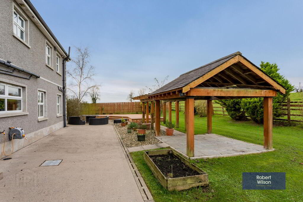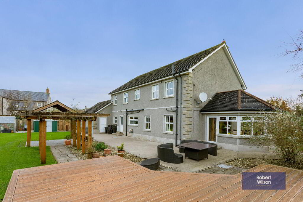 Nestled in a picturesque semi-rural setting near Moira and Dromore, this beautiful home offers spacious living on a generous plot. The ground floor has underfloor heating throughout and features a welcoming entrance hall with a stunning Cathedral window, lounge with a feature fireplace, and a bright sunroom opening onto a patio and decking area. A modern kitchen with a 'Rangemaster' stove and integrated appliances, a formal dining room, family room, utility, and downstairs W.C. complete the versatile ground floor layout. An integral double garage with roller door adds practicality.