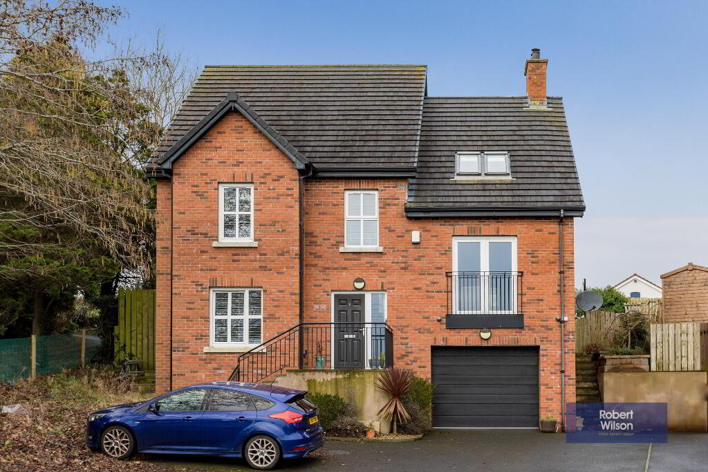 This beautiful property in Magheralin on an elevated site, just 5 years old has been brought to the market. It has been lovingly looked after & tastefully decorated throughout. The front door is composite, rear uPVC patio doors through the snug. The property benefits from first floor living room with multi fuel stove, kitchen with separate dining room & snug, generous utility room, ground floor bedroom with ensuite plus 3/4 further bedrooms. The front garden has views over the beautiful countryside, looking towards the Mournes. The rear garden is fully enclosed & is currently being refurbished to include, paved patio area with steps to a raised garden enclosed with trees.
