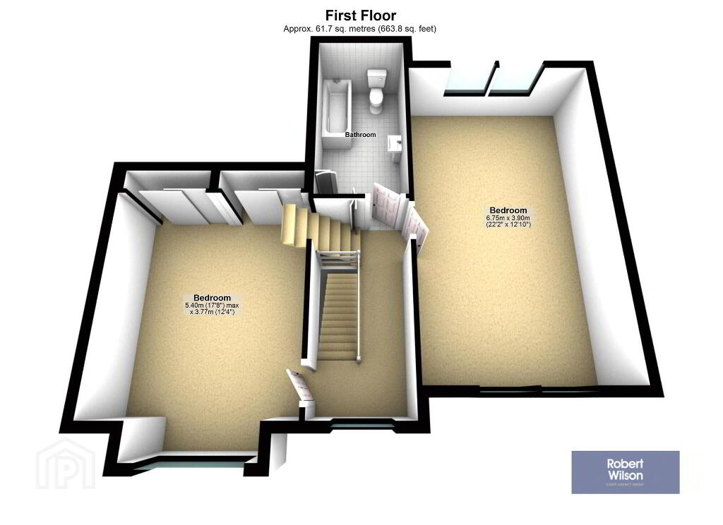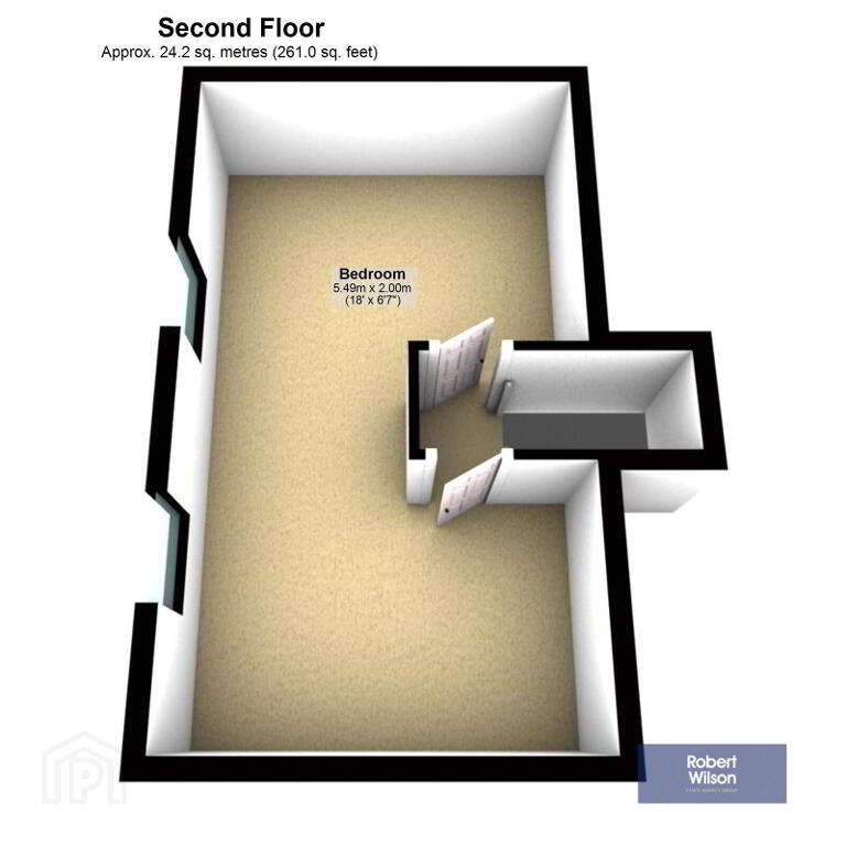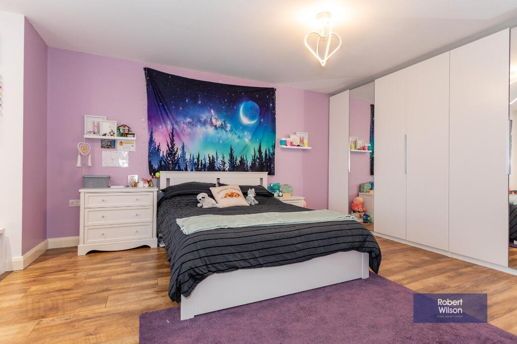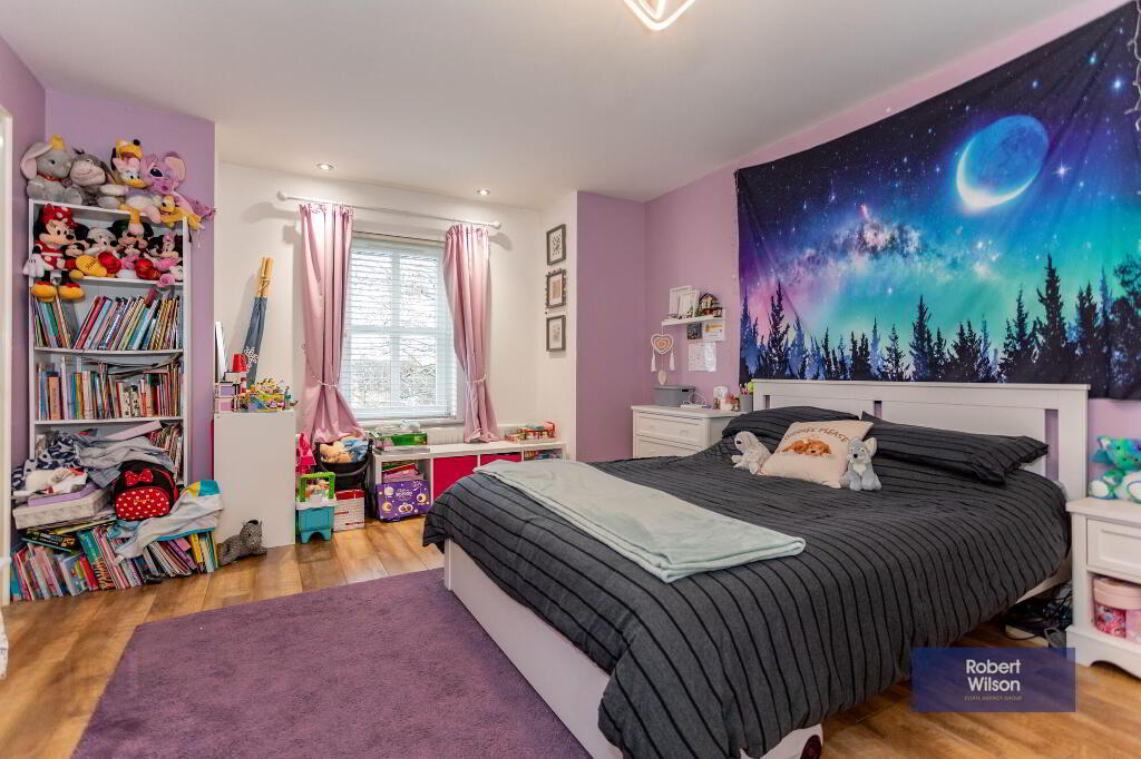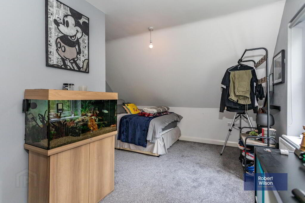 Wood laminate flooring, 2 front & 2 back facing Keylite windows, telephone point & wall mounted TV point, access to loft via pull down ladder.