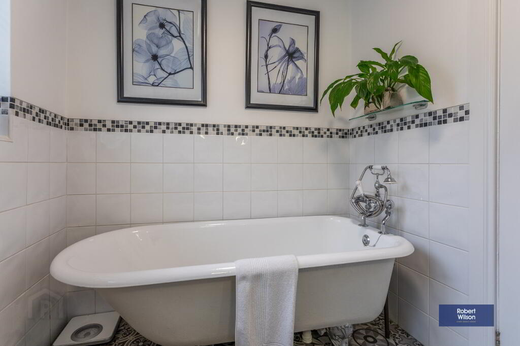 Ascend to the First Floor via the spindled staircase where you'll find well-appointed Bedrooms, including a spacious principal Bedroom with corniced ceilings and ample natural light. The luxurious Bathroom on this floor features a freestanding roll top bath and tasteful fixtures.
