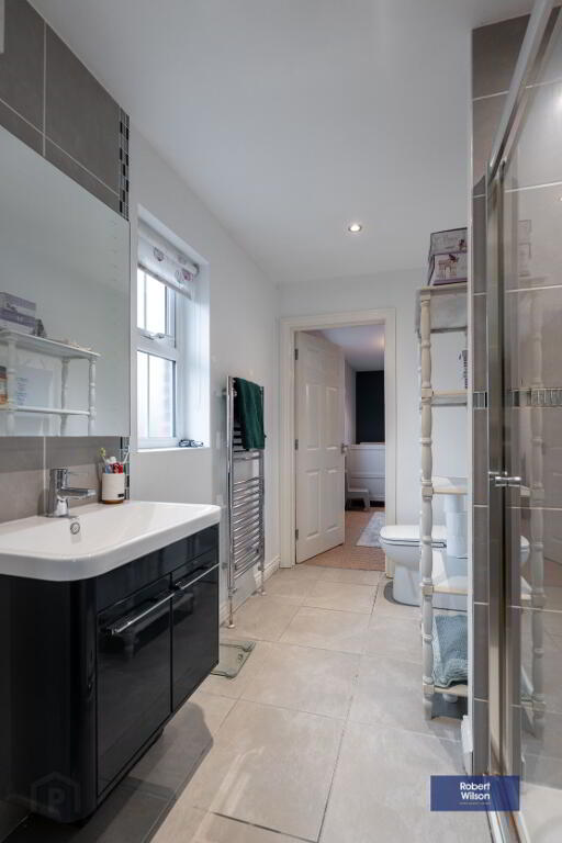 Upstairs, the main bedroom benefits from a Jack & Jill en-suite, shared with a second well-sized bedroom. A third bedroom and a stylish family bathroom with a bath and shower complete the first floor. Additional storage is available via the landing's hot press and access to the roof space.